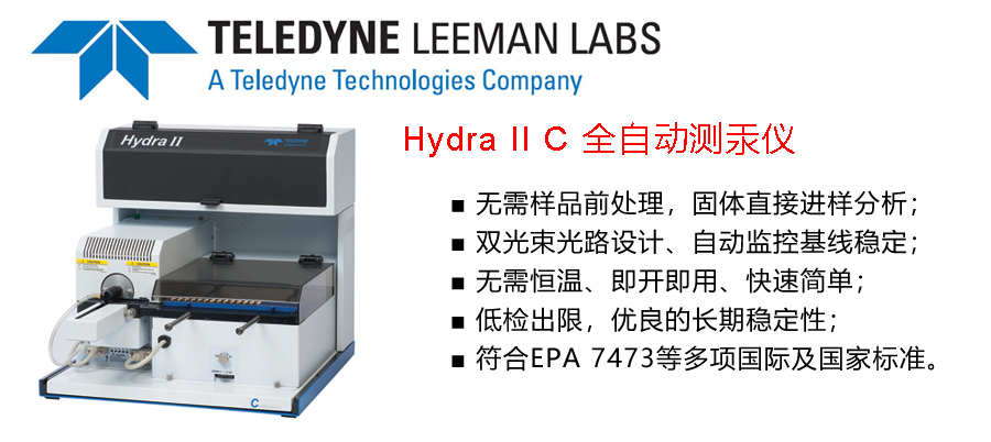 Hydra II C全自動(dòng)直接測(cè)汞儀是一臺(tái)符合國(guó)家環(huán)境保護(hù)標(biāo)準(zhǔn)《HJ923-2017土壤和沉積物總汞的測(cè)定 催化熱解-冷原子吸收分光光度法》的全自動(dòng)總汞檢測(cè)儀。Hydra II C全自動(dòng)直接測(cè)汞儀具有:固體液體直接進(jìn)樣分析,不需要樣品前處理;雙光束、雙光學(xué)池設(shè)計(jì),自動(dòng)背景扣除監(jiān)控基線穩(wěn)定,優(yōu)良的穩(wěn)定重現(xiàn)性;獨(dú)特的干燥管除水技術(shù)避免水吸收譜線信號(hào)干擾,無(wú)需恒溫、即開即用、快速簡(jiǎn)單;皮克級(jí)的超高靈敏度等特點(diǎn)。這臺(tái)儀器是土壤檢測(cè)的得力助手,已在全國(guó)各級(jí)環(huán)境監(jiān)測(cè)實(shí)驗(yàn)室廣泛應(yīng)用。